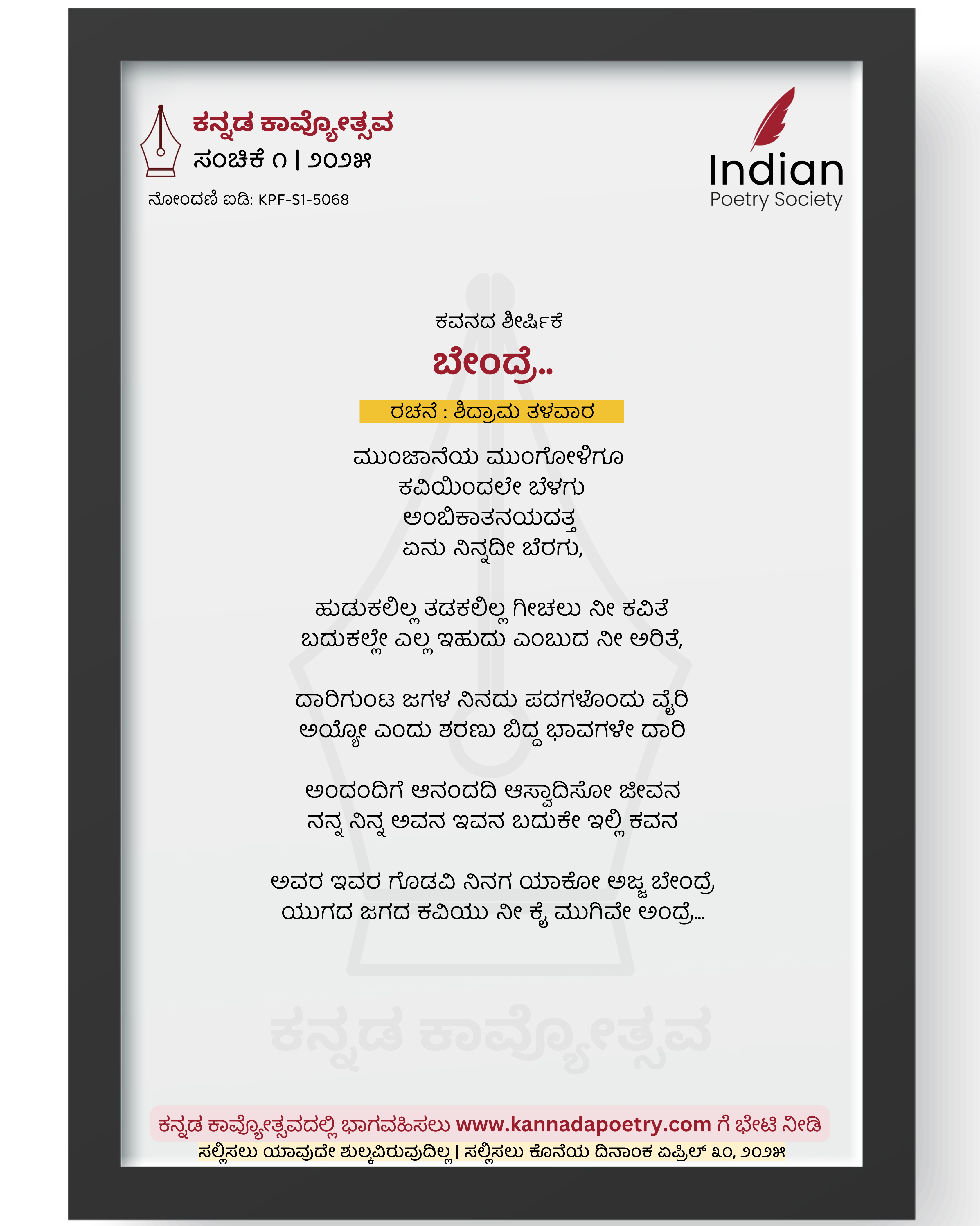 ನೋಂದಣಿ ಐಡಿ : KPF-S1-5068