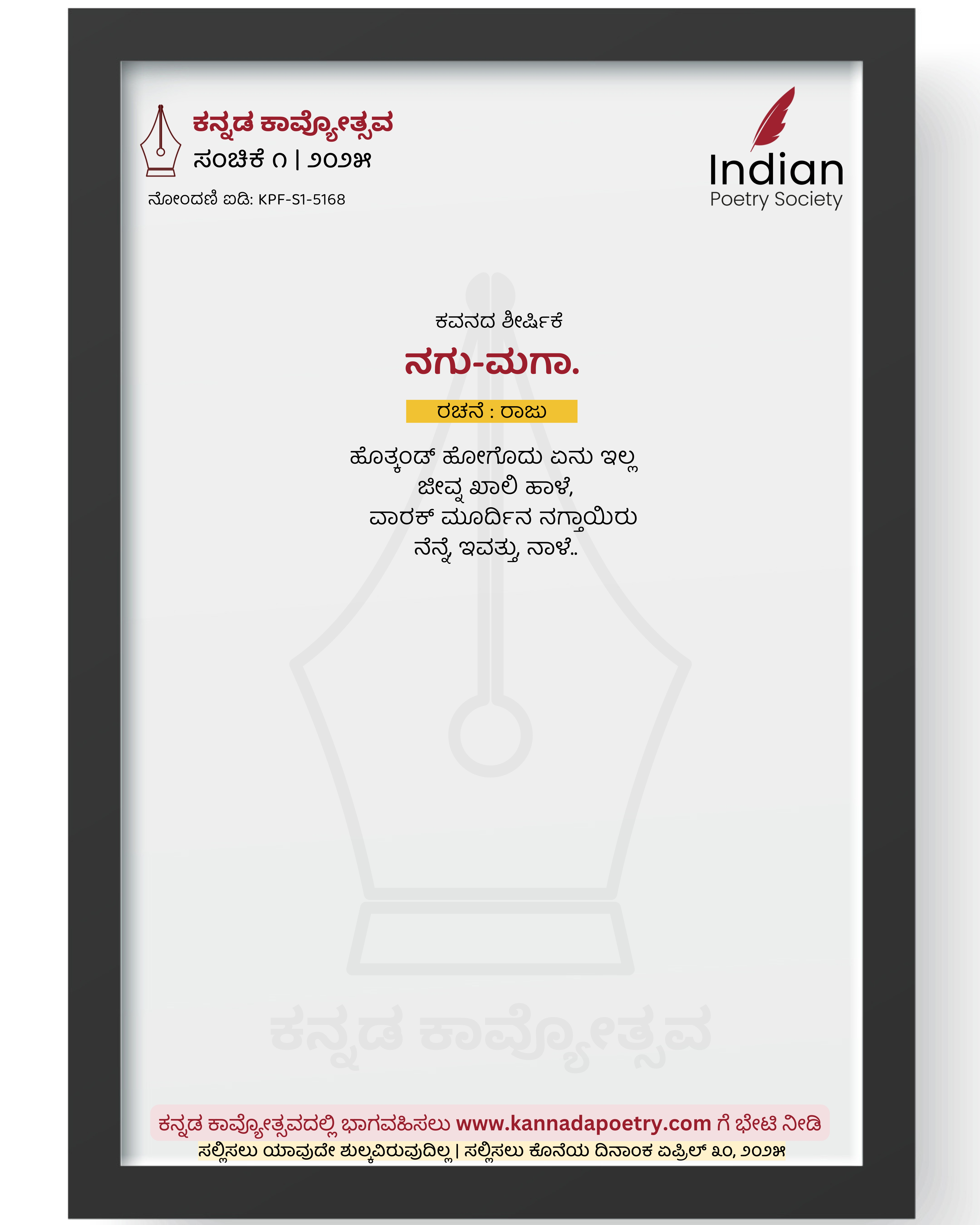 ಹೊತ್ಕಂಡ್ ಹೋಗೊದು ಏನು ಇಲ್ಲ ಜೀವ್ನ ಖಾಲಿ ಹಾಳೆ, ವಾರಕ್ ಮೂರ್ದಿನ ನಗ್ತಾಯಿರು ನೆನ್ನೆ, ಇವತ್ತು, ನಾಳೆ..