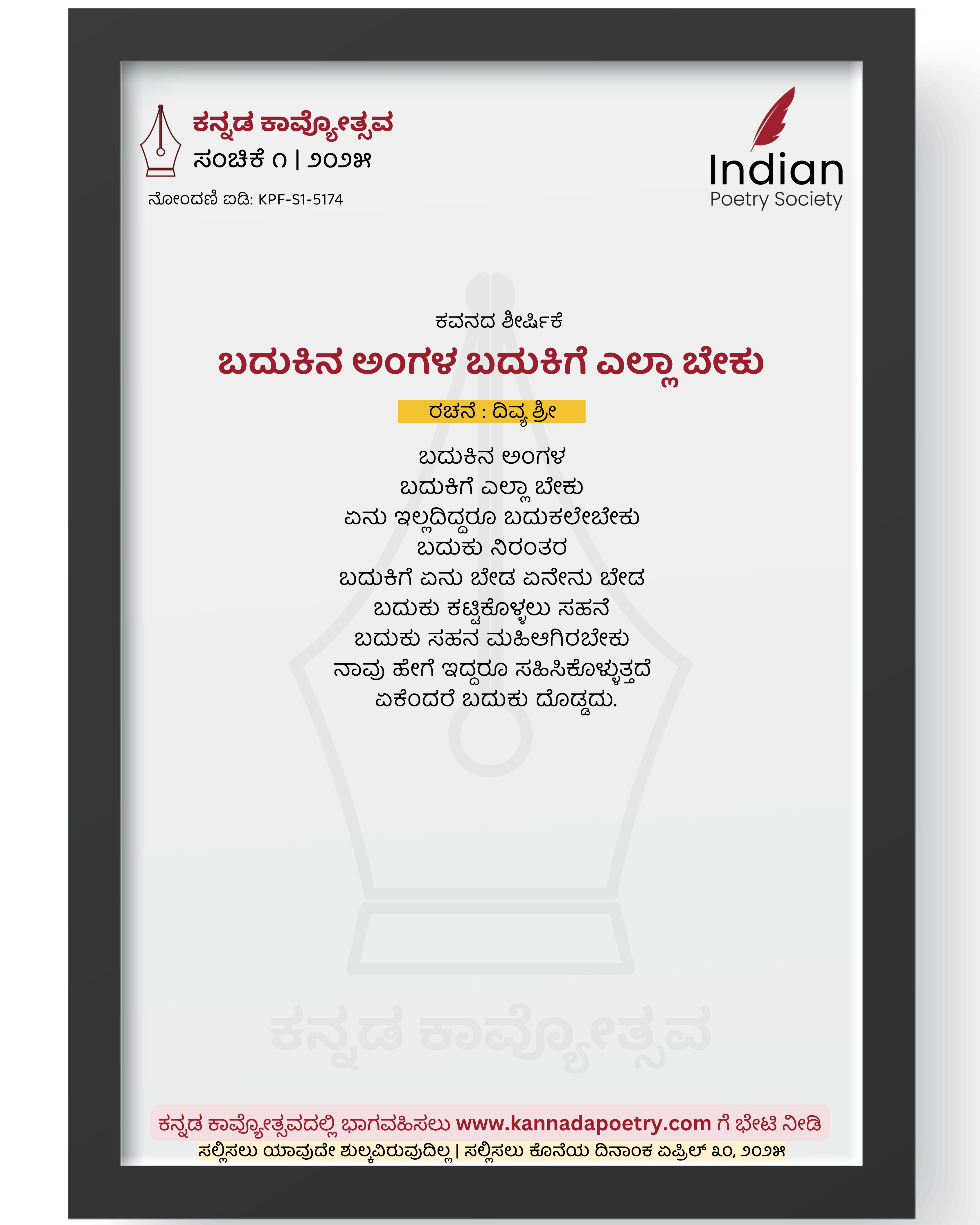 ನೋಂದಣಿ ಐಡಿ : KPF-S1-5174