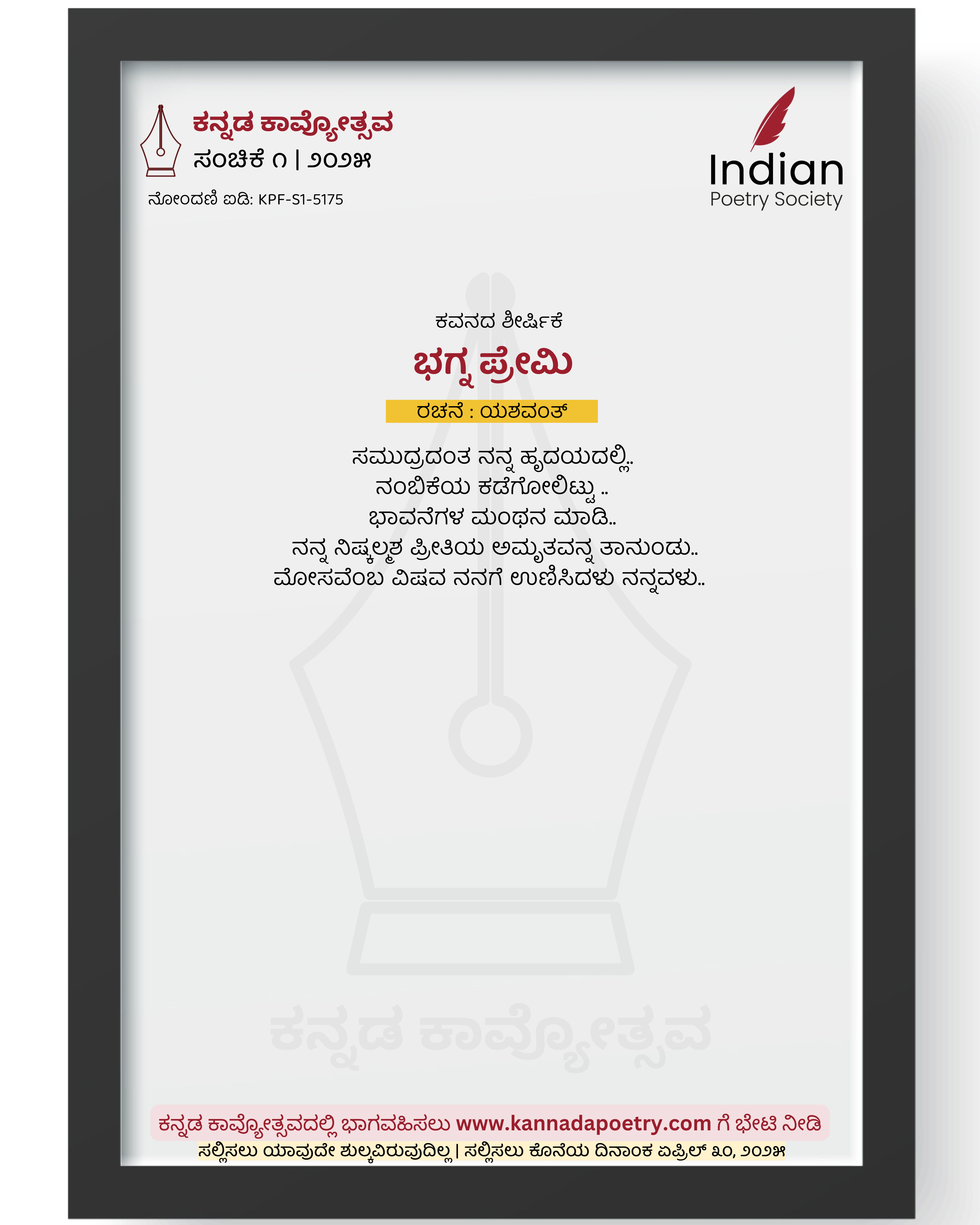 ಸಮುದ್ರದಂತ ನನ್ನ ಹೃದಯದಲ್ಲಿ.. ನಂಬಿಕೆಯ ಕಡೆಗೋಲಿಟ್ಟು .. ಭಾವನೆಗಳ ಮಂಥನ ಮಾಡಿ.. ನನ್ನ ನಿಷ್ಕಲ್ಮಶ ಪ್ರೀತಿಯ ಅಮೃತವನ್ನ ತಾನುಂಡು.. ಮೋಸವೆಂಬ ವಿಷವ ನನಗೆ ಉಣಿಸಿದಳು ನನ್ನವಳು..