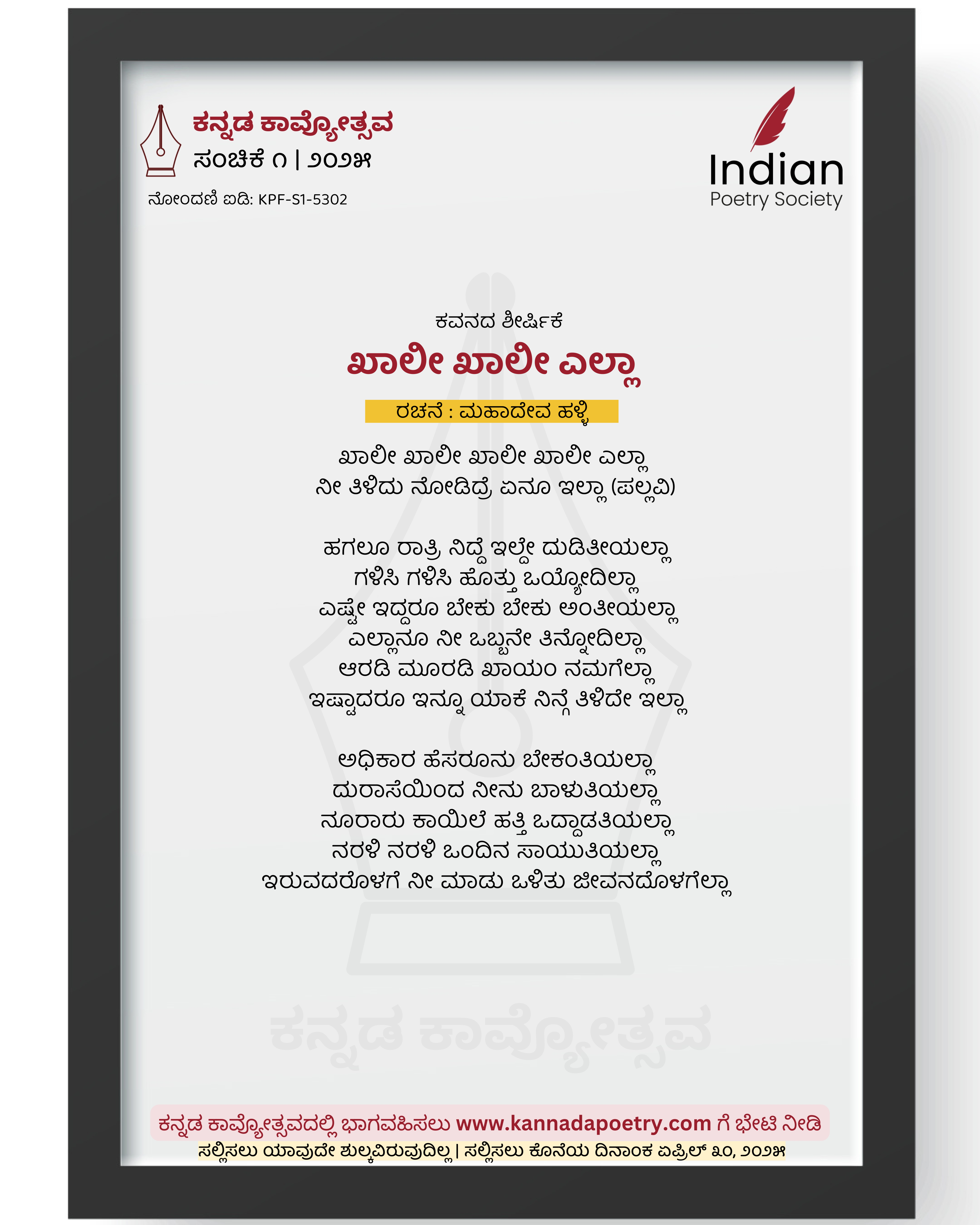 ನೋಂದಣಿ ಐಡಿ : KPF-S1-5302
